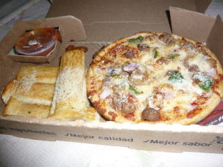 Hut」へ行って夕食(勿論、入口ではショットガンおじさんが睨みをきかせてます・汗)。注文時に名前を訊かれ「ピザを注文するのに名前が要るの?」と尋ねたら「注文が用意出来たらあなたの名前を呼ぶから」と笑われました。番号札を渡すのではなく、客の名前を呼ぶシステムだったんですね(笑)。