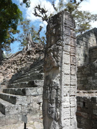 写真左はグアテマラとホンジュラスの国境。国境を越えて10キロも走らないうちに古代マヤ遺跡の最高傑作のひとつが街外れにあるコパン・ルイーナスの街に到着。治安の良くないホンジュラスですが、コパン・ルイ―ナスは別世界。のんびりとした平和な空気が流れていました。
