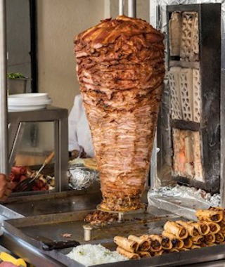 pastorかSuaderoを頼めばハズレは無いです。Al pastorはドネルケバブみたいにして焼いた豚肉を削ぎ落したもので(写真右)、Suaderoは日本で言うところの牛バラの煮込み。これ以外の肉はモツ類が多いのでモツが苦手な人は要注意。しかし、タコスで重要なのは具よりもトルティーヤと呼ばれる皮。メキシコではトウモロコシ100%の皮を使うのが基本で大きさも小振りです。