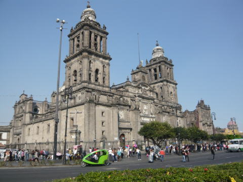 メキシコの首都メキシコ・シティの中心部、歴史地区と呼ばれているエリアです。完全にスペイン風なのは、16世紀前半にアステカ王国の都テノチティトランを破壊したスペイン人が、その瓦礫の上に作った街並みだから。大聖堂(写真左)の前にはソカロという中南米で最大の巨大広場があります。このソカロから北へ向かって1キロほど歩くとテピート(Tepito)という地区がありますが、治安が良くないエリアなので、近付かないようにしてください。