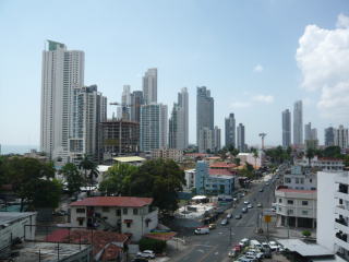 写真左はコスタリカとパナマの国境。メキシコシティを発って以来、陸路で南下を続けること1ケ月半、ようやくパナマに到着。イミグレの列に並んでいると係員のような女性がやって来て、切手大の変なシールを1ドルで買わせようとするので、拒否したらイミグレの別室に連れて行かれ「払わないと入国拒否するぞ」と告げられました。1ドルなのでまあいいかと払いましたが、支払いが必要なら窓口で払わせるだろうし、レシートも無いしで、どう考えても怪しかったです。僕は今でもイミグレの職員ぐるみの小遣い稼ぎだという疑いを持っていますね。在日本パナマ大使館の方、ほんとのところを教えてください。1ドルの恨みはデカいんです(笑)。首都パナマシティの新市街の中心部は、高層ビルが建ち並ぶ大都会。写真右端はパナマ運河に架かるアメリカス大橋。