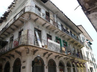 パナマシティの旧市街。パナマはスペイン植民地時代、南米で産出される金銀を本国へ輸送する為の中継拠点であったので、植民地時代の建物が多く残っています。ただ、僕が訪れた当時は写真中央のように放棄されたままの建物が多くて、そこに低所得者層が不法に住みついてスラム化しており、治安も良くありませんでした。右端の写真は