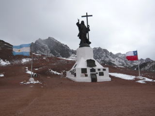 チリのサンティアゴからアルゼンチンのメンドーサへ国際バスで向かいました。写真左はチリとアルゼンチンの国境、 クリスト・レデンドール。このルートもアンデス山脈超えですけども、ルート上の標高の最高地点は3千2百メートルくらい。楽勝ですね(笑)。メンドーサ(写真中央)は1861年の大地震で大部分の建物が倒壊し、その後に再建された街なので特に見るべきものはありませんが、南米最高峰アコンカグア観光の拠点となります。原産地のフランスではほぼ消えてしまったマルベック種を使って醸造されるワインの産地としても有名。