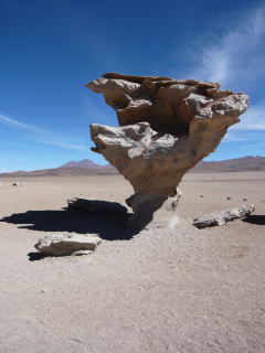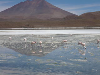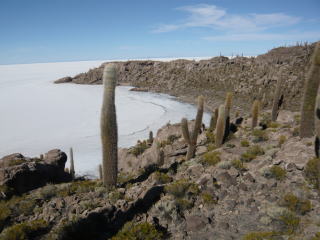 ポトシから夜行バスでウユニへ。かつては地球の果てという感じのウユニでしたけども、今では飛行場も出来て誰でも訪れることのできる普通の観光地となりました。傾斜のまったくないウユニ塩原は雨期に水が浅く張って鏡のようになることから有名になりましたが、乾期は水が消えて単なる真っ白の平原になりますので、訪問時期には注意してください。また、水が張っていても風が強いと右端の写真のように波が立ち、なかなか鏡のような湖面にはなりません。僕はウユニから4WDに乗り、2泊3日かけてチリのサンペドロ・デ・アタカマへ向かいました。標高の高いアンデス山脈越えで、食事、宿代込みの料金は驚きの100米ドルでした(2014年当時の料金)。