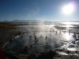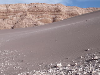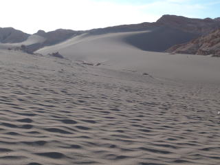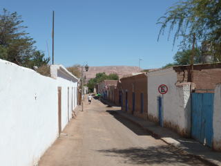 アタカマの街には特に見るべきものが無いですが、郊外にアタカマ砂漠があり、ここは月か火星かと思えるような荒涼とした景色が広がっています。実は世界で一番乾燥している地は北アフリカのサハラ砂漠や中東のアラビア砂漠とかではなく、このアタカマ砂漠。年間降水量はなんと10ミリ以下で、アタカマの街では水は大変な貴重品。そのせいか、街で一番の安宿であっても料金が非常に高くて安宿とは呼べなかったです(笑)。ボリビアからチリへやって来ると、モノの値段がなんでもバカ高に感じてしまうのは仕方のないことなんですけども、貧乏旅行者にとってはやはり辛いですね(涙)。この街、チリで最古の街とよく紹介されますが、あくまでもスペイン人が現在のチリの領土内において一番最初にたどり着いた地という意味でです。