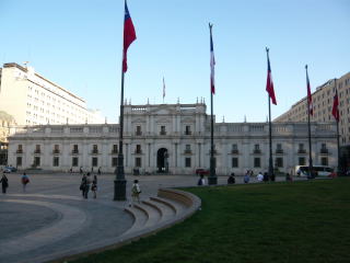 チリの首都であり事実上の最古の街であるサンティアゴです(正式名称はSantiago de Chile)。人口5百万人の大都市ですが、チリやアルゼンチンでは強盗にいきなり拳銃で撃たれるというようなことはまず無いので、かなり気が楽(笑)。 左端はモネーダ宮殿(大統領官邸)。1973年、ピノチェト将軍が率いる軍部のクーデターによって追い詰められた当時の大統領で社会主義者のアジェンデは、宮殿が戦車に包囲され、空軍機の爆撃を受けても尚、降伏を拒否し、最後は宮殿内で自決しました。このクーデターの裏で暗躍していたのは勿論アメリカ。いつもながらの汚いワンパターンの手口が笑えますね。政権を奪取したピノチェトは軍事独裁政権を打ち立てて左翼活動家を弾圧し、少なくとも3千人を虐殺したと言われています。