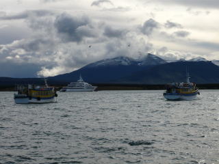プンタ・アレーナスからバスでアルゼンチンのウシュアイアへ。途中、小型のフェリー船にバスごと乗り込んでマゼラン海峡を渡ります。天気が良ければ対岸を見渡せる狭い海峡の向こう側にあるのはのフエゴ島。南米大陸南端の最大の島です。チリは物価が結構高いので食費は節約に務めました。エンパナーダ(ミートパイ)だけで済ませるなんてこともしばしばでしたね(涙)。