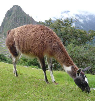 マチュピチュ遺跡です。こんな辺鄙な場所になぜ遺跡があるのかは未だに解明されていませんが、都市ではなく王の別荘、離宮の類であったのではないかと推測されています。遺跡内ではリャマがうろうろしていますけども、これは野生ではなく観光客向けに連れてこられたもの。リャマはラクダの一種で、ラクダ類は敵を威嚇する際、相手に唾を吐きかけます。それはリャマも同じで、その唾は滅茶苦茶クサいので近寄る時は注意してください(笑)。