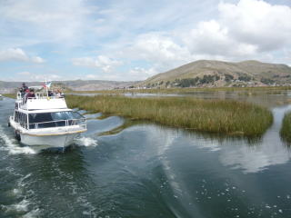 プーノでは、クルーズ船に乗船してチチカカ湖の沖に浮かぶトトラ(葦)で出来た浮島を訪れるのがお約束の観光。島では一応住民が生活していますが、完全に観光客向け。島の子供たちはプーノの街で暮らして学校に通っているそう。また近年、プーノ周辺のチチカカ湖は水質汚染が激しく、浮島で暮らして水に囲まれているというのに、わざわざ船で1時間ほど離れた場所へきれいな水を汲みに行っているとも話していました。因みにこの観光で使われている船、見てくれは良いのですが、費用節約の為かエンジンは船舶用ではなく車のエンジンを流用しているみたいで、トルクが無くてスピードが全く出ません。あまりにもとろくて、滅茶苦茶イライラします。