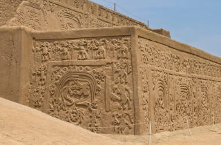 写真左はエクアドルとペルーの国境。当時、この辺りは強盗が多くてとても治安が悪かったです。国境からバスで約9時間、ペルー第3の街トルヒージョに到着(写真中央)。トルヒージョの街中はアルマス広場くらいしか見所が無いですけど、街の郊外に12世紀頃からインカ帝国に征服されるまでの期間に栄えていたチムー王国の遺跡が多数あります。基本、日干し煉瓦を積み上げるか泥を塗り固めただけですが、この地域は砂漠気候で雨がほとんど降らないので保存状態は良好。