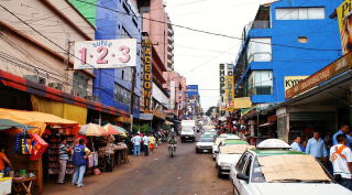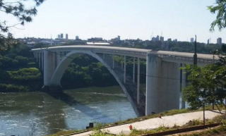 写真左はブラジルとパラグアイの国境、パラナ川。川の中央が国境線になっていて、フォス・ド・イグアスから橋を渡った向こう側にパラグアイのシウダー・デル・エステの街があります。パラグアイの方が物価が安く、しかもシウダー・デル・エステは免税都市なので、多くのブラジル人が電化製品などを求めて買出しにやって来ますが、治安の悪い街としても有名。昼間、商店が開いている間は人で賑わっていますが、夕方前に店が閉まるとゴーストタウンと化します。