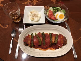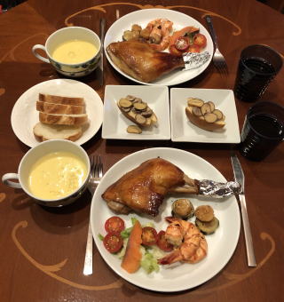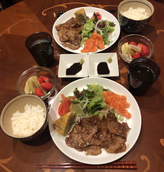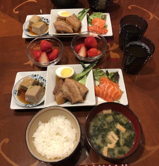 前述のとおり、牛肉は高くてあまり口に入らなくなってきましたので、肉料理の中心はポークかチキンとなってくるのですが、チキンも最近値上がりが激しく、量的に考えれば一番割安感があるのはやはりポークでしょうかね(まあ、ポークの値段もかなり上がってますが)。写真は左からトンカツ、スペアリブのバーベキュー、ポークチャップ、豚汁、豚の角煮、豚の生姜焼です。スペアリブのバーベキューは、圧力鍋で煮て柔らかくしてから、甘辛の手作りソースにからめ、さらにオーブンで焼き上げます。下茹でをしない歯ごたえのあるバーベキューも良いのですが、僕も嫁さんも、ほろほろと身離れが良いバーベキューの方が好み。