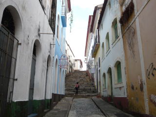 サルバドールの街です。旧市街にはとても美しい街並みが続いていて、僕の中ではブラジルでお気に入りの街のひとつ。植民地時代、奴隷貿易の拠点であった為、住民はアフリカ系ブラジル人が多いです。ブラジルの格闘技として有名なカポエイラは、この地方の黒人奴隷たちがその礎を築きました。写真右端は崖の上のアルタ地区と崖下のコメルシオ地区を結ぶ有料の巨大エレベーター。
