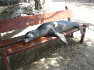 グアヤキルから飛行機でガラパゴス諸島へ向かいました(所要時間は2時間弱)。諸島の中心となるのはサンタ・クルス島のプエルト・アヨラ。観光客が落とす金を目当てに本土から移住してきたエクアドル人で人口は既に1万人を超え、普通に街区が広がっていて(写真左)サンタ・クルス島での環境破壊は進むばかり。日々増え続けるゴミの処理も大問題になっていました。ガラパゴスと言えばゾウガメですが、観光客が目にするのはほとんどが養殖ガメ(人口飼育と呼ぶそう)。海岸沿いに行くと野良アシカ?がそこら中にいて(笑)、海イグアナもしかりです。観光は小型クルーズ船に乗船しての周辺の無人島巡りが中心となりますが、料金が高いので結構な出費を強いられます。まあ、何度も訪れる場所じゃないですから仕方ないですね。