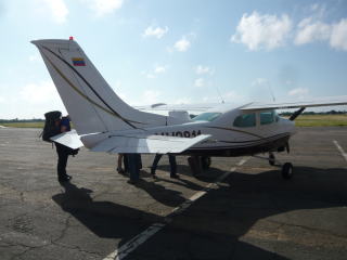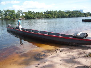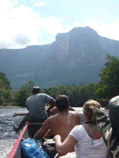 シウダー・ボリーバルから小型機でカナイマへ。カナイマは道路が通じていない陸の孤島。飛行機でしか行くことができません。往復の航空機運賃と現地での2泊3日の食時付きツアー込みで、料金は米ドル払いで90ドルでした。ちょっと信じられなかったですね(安すぎて・笑)。カナイマの簡素なロッジで1泊した後、船外機付きの細長い小型船でエンジェル・フォールへ向かいます。所要時間が5時間もかかり、船の硬い木の板の上にずっと座っていると、おしりが滅茶苦茶痛くなってきますので、皆、ライフジャケットを脱いでおしりの下に座布団代わりに敷くことになります。急流などでライフジャケットの着用が必要になると、船頭さんが「chaleco(ベスト)」と叫んでくれますので、その時だけは身に着けましょう。乾季に入って川の水深が浅くなると、船底が岩と接触するので船が出せず、エンジェル・フォールへ行けなくなることもありますので、もし、行ってみたいという方がおられたら、訪問時期には注意してくださいね。