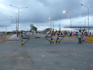写真左はベネズエラとブラジルの国境。ここから乗合タクシーでボア・ビスタへ向かいます。声を掛け合って同乗者を集めないといけませんが、僕はブラジル人のグループに声をかけて入れてもらい出発。ところが、移動の途中で渋滞が始まり、車列が動かなくなりました。事故でも起こったのかと思いきや、先住民のヤノマミ族が抗議の道路封鎖をしているとのこと。金の不法採掘者が彼らの土地に勝手に入って森林を伐採するなどやりたい放題なのに、政府が何も手を打たないことに対する抗議でした。封鎖は3時間程で解かれ、再び車は動き始めましたが、皆、怒るどころか、バリケードの傍を通る際、道路を封鎖していた人々に手を振って連帯の意を示していました。1964年から21年間、ブラジルで続いた軍政への反動かどうかは分かりませんが(ここでも暗躍していたのは勿論アメリカ)、ブラジル人は皆、自国の政府のことなど全く信用してないですね(笑)。右端はボア・ビスタの街。アマゾンの奥地にある割には結構大きな街でしたが、観光するに値するようなものは何も無かったです。