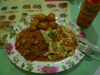 左はマラカイボで一番有名な通り「カラボボ」。この写真からは分かりませんが、マラカイボは油田と石油で発展した街なので、中心部には高層ビルが建ち並んでいます。中央の写真は、当時カラカスで一番有名であった建物 「ダビ・ビル(Torre de David)」。建設途中で放棄された高層ビルに低所得者層が勝手に住み始め、スラム化していました(僕が訪れた時には、そのほとんどが強制排除されていましたけども)。28階くらいまで人が住んでいたそうなんですが、勿論エレベーターが無い為、上り下りは階段だったらしいです(笑)。どういう内部構造になっているのかは分からなかったですけど、10階くらいまではバイクや車で行くことができたとも聞きました。ベネズエラの大抵の街には中華レストランがあり、右の写真はそこで食べた中華の一例。シェフは大抵、中国人なので味も良く、飲み物とセットで闇両替価格なら1ドル程度でした(汗)。