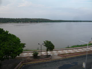 エンジェル・フォールのあるカナイマ国立公園へのゲートウェイとなるシウダー・ボリーバルの街。カラカスから夜行バスで街に着きましたが、途中3回も軍の検問があり、そのうち1回は荷物検査がありました。でも、恐れていた身体検査はされず、闇両替の金を没収されずに済んだのは良かったです。カナイマで会った白人旅行者の一人は身体検査でパンツ一丁にされた末、没収されたそう。右端の写真は街の北側を流れるオリノコ川。シウダー・ボリーバルは静かで手入れの行き届いた綺麗な街でした。